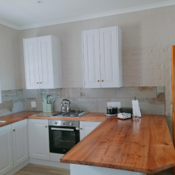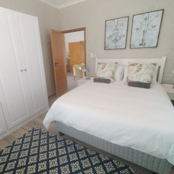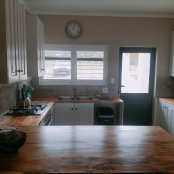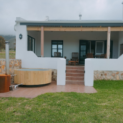 Outside, the villa’s patio provides stunning views of the Klein River valley and Stanford village, complemented by built-in braai facilities, a wood-fired hot tub, and a private garden for serene moments outdoors. Enjoy uninterrupted power with solar panels and an inverter system, along with complimentary Wi-Fi to stay connected throughout your stay.