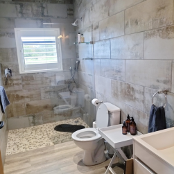 Discover high-quality finishes and amenities throughout Vineyard Villa 2, designed to cater to the needs of discerning travelers seeking a countryside escape. The main bedroom features a queen-size bed with premium mattress and bedding for a peaceful night’s sleep. Additionally, the second bedroom offers two single beds, making it ideal for families or small groups.